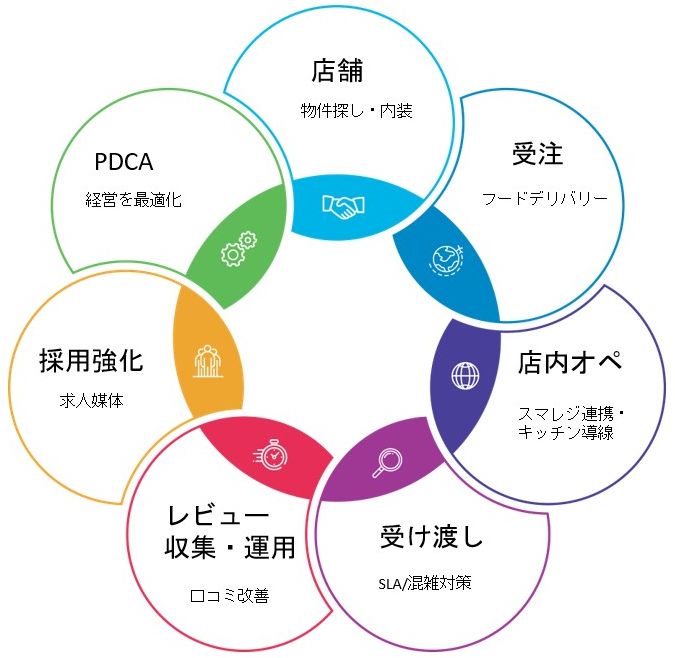 立ち上げに関わるメニュー作成や営業時間の初期設計など一括サポート、最短で“受注開始できる状態”を作ります。